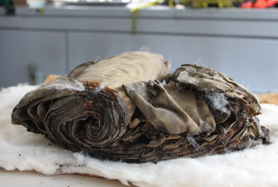随后的清洁、加湿和压平处理使这些资料的状况变得稳定,尽管这些资料“遭到了烘烤,但没有被烧毁”,华莱士说。由于一些首次采用的技术,其中许多资料将被修复,并将被加入到虚拟书架中。