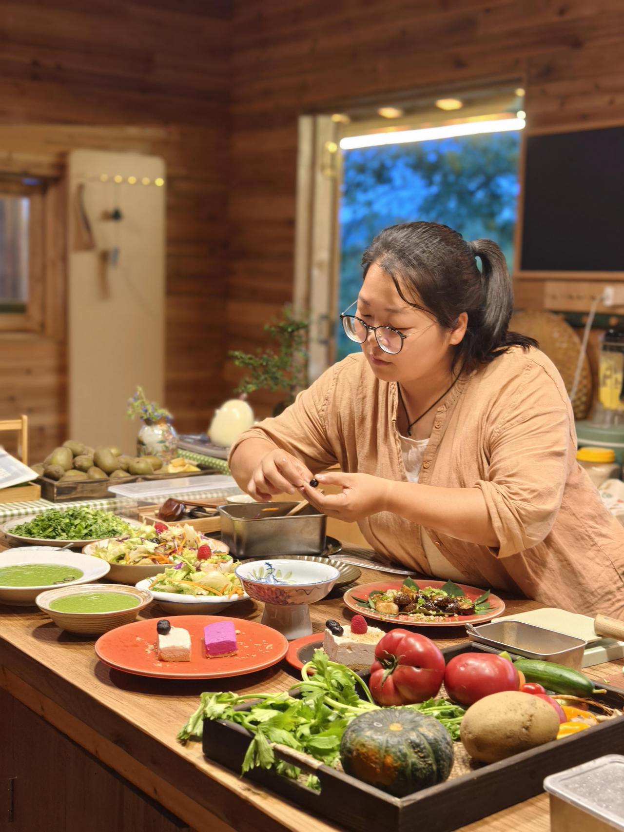 今年,农场扩大了经营面积,增加了生态养蜂、树屋搭建等研学体验新项目,但朱佳莉总觉得还有提升空间。“农场80%的客人是回头客,怎样让他们在研学之外有更多体验?”一天夜里,朱佳莉和封玲凑在一起,“头脑风暴”出一个新想法:“农耕体验课基本是一整天,午餐是个空白点。其实,农场的土地、农产品都是现成的,要不要试试再添几张餐桌?”